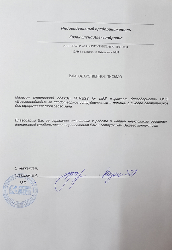 Освещение торгового зала «Fitness For Life»